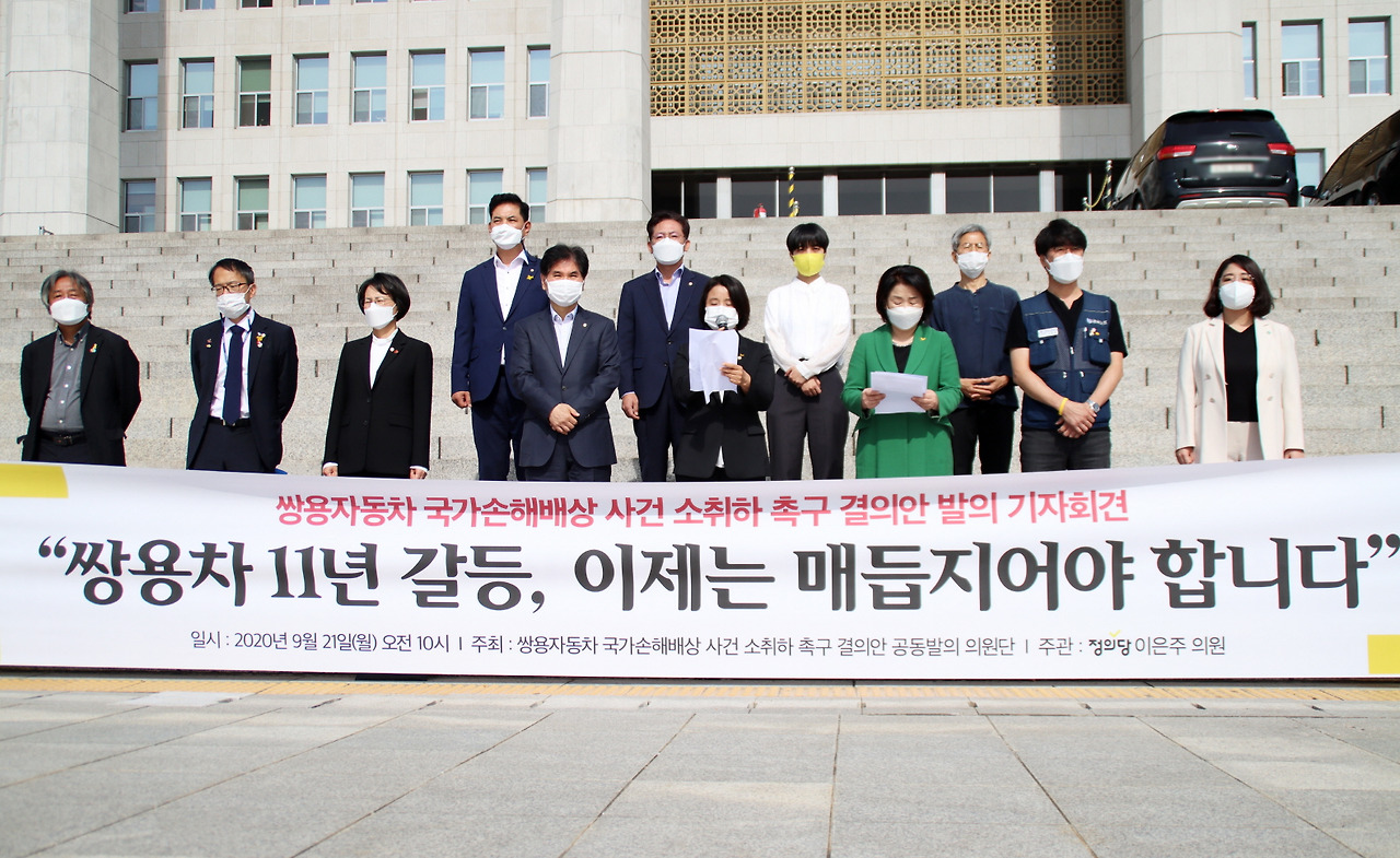 쌍용자동차 국가손해배상 사건 소취하 촉구 결의안 발의 기자회견 참가자 일동