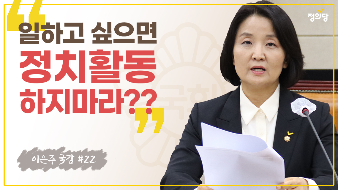 이은주 의원은 “민주주의를 유지하는 기본 토대는 개개인의 정치적 자유를 보장하는 것”이라며 “정당가입 자체가 업무 수행에 방해가 된다고 볼 수 없으며, 정당 가입 및 활동의 자유는 헌법 제8조제1항, 정당법 제22조제1항에 의해 보장되는 기본권이다. 공적업무 외 시민의로서 보장받아야 할 영역까지 전면 제약하는 과도한 규정에 대한 개선이 필요하다.”고 말했다. 또한, 이 의원은 “행안위 소관 기관의 공개 자료만 검색해도 5곳이나 발견됐다.”며 “중앙선거관리위원회는 이밖에도 내부 규정으로 정치기본권 행사를 제약하고 있는 곳이 있는지 전 부처의 산하단체, 유관기관 등에 대해 전수조사를 진행하고, 개선 권고를 해야 한다”고 했다.(끝)