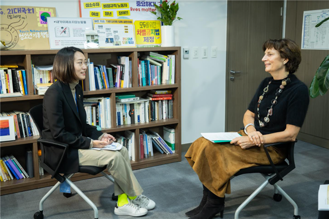 (사진설명: 장혜영 국회의원과 요아나 도너바르트 주한 네덜란드 대사가 대담을 나누고 있다. 12월 11일, 장소는 국회의원회관 장혜영의원실)