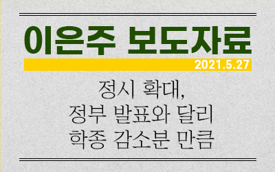 교육부가 밝혀왔던 형태와 다른 모습이다. 2019년 11월의 <대입제도 공정성 강화 방안>에서 논술과 특기자전형을 수능 전형으로 유도한다고 했는데, 결과는 그렇지 않았다. 논술 보다는 학생부종합을 줄여 정시 확대를 하였다.