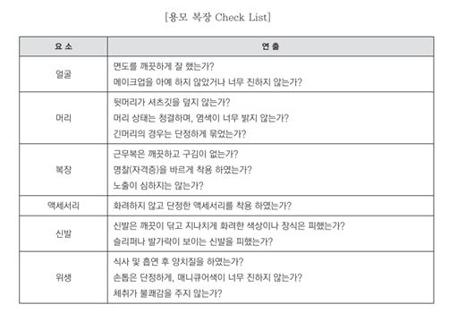 <그림2> 연수 교재에 공통으로 들어간 용모 복장 체크리스트
