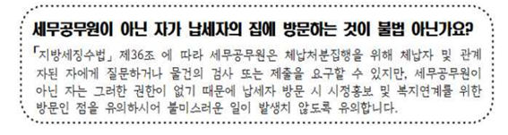 <그림2> 체납관리단 업무 불법성을 인지한 경기도가 시정 홍보 및 복지연계를 위한 방문임을 유의하라는 문구