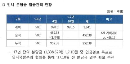 KF-X 인니 분담금 입금관리 현황(2017.09.28.기준/제출:방사청)           김종대의원실