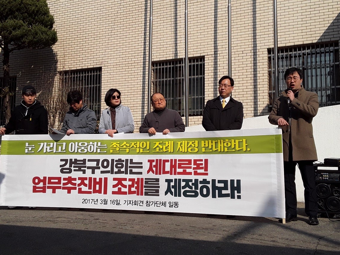 3월 초 7대 강북구의회 업무추진비 사용내역 분석결과를 발표하고 투명한 업무추진비 사용을 위해 강북구의회 업무추진비 사용 및 공개에 관한 조례 제정 청원 서명운동을 시작했습니다.