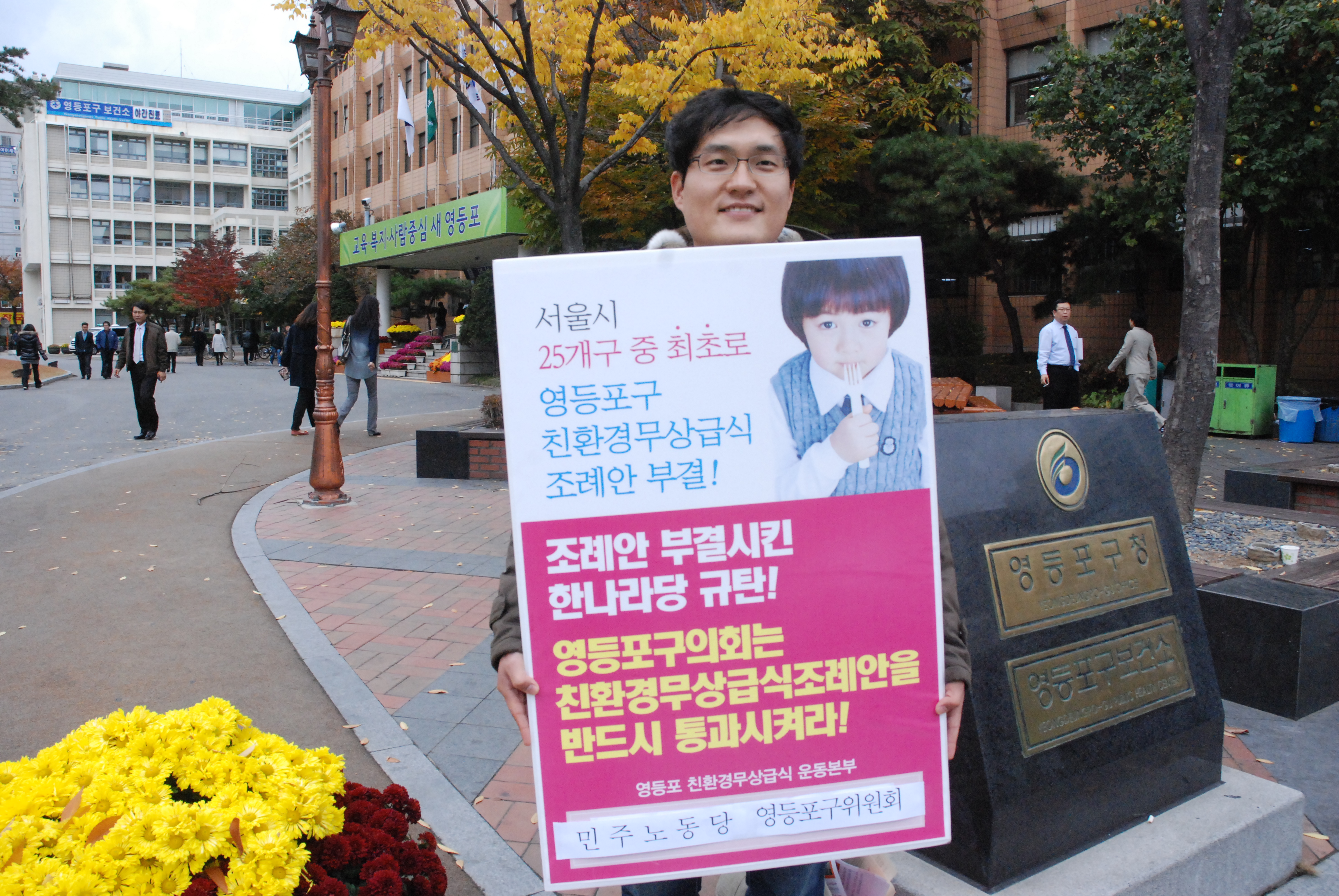 첫 번째 이야기 [시작, 영등포살이] 1. 광주민주화운동을 계기로 출발선에 선 미니 미니의 출생지는 광주광역시, 서울로 올라오게 된 건 대학교 진학 때문이었습니다. 마치 영화 ‘1987’의 한 장면에 나오는 것과 같이, 미니는 입학 후 학교 동아리 선배들이 보여준 ‘5.18 광주민주화운동’ 영상을 보고 분노를 합니다. 내가 나고 자란 고향에 저런 일이 있었다고? 그 때부터 세상을 바꿔야겠다고 결심합니다. 미니의 정치인생은 그렇게 시작됩니다. 2. 학생운동을 통해 변화한 미니 대학에서 인문대 학생회장을 하며 학생운동을 하던 미니는 사회를 바꿀 수 있는 많은 방법 중에 현실적으로 해야하는 것이 무엇일까, 진지한 고민을 하기 시작합니다. 그렇게 대학시절 2003년 정당에 가입, 민주노동당 한양대학교 학생위원장을 맡으며 정당활동을 본격적으로 시작하게 됩니다. 그리고 올해로 미니가 정치를 시작한지 17년이 되었습니다. (민주노동당 사무국장 시절, 영등포구청 앞에서 1인 시위를 하는 모습) 3. 사회로 나온 미니 그러던 미니는 대학을 졸업하고 2010년 영등포에 첫 직장을 구하게