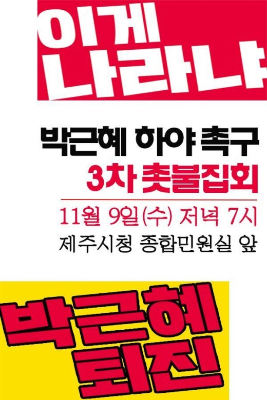 박근혜대통령의 하야를 촉구하는 제주도민들의 촛불집회가 열립니다.