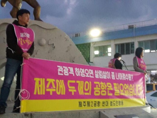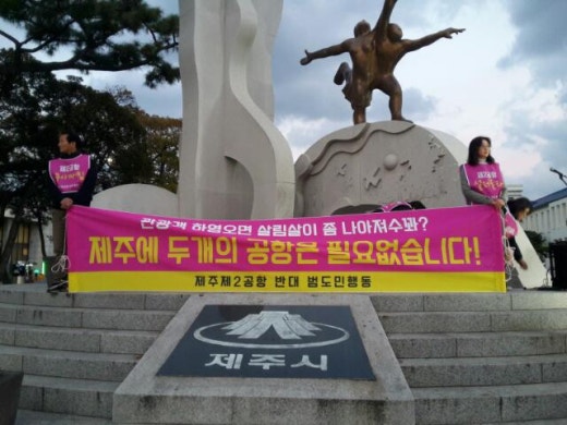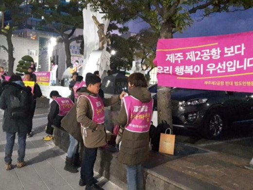 제2공항 반대 범도민행동에서 제주시청 앞 선전전을 진행하고있습니다~*